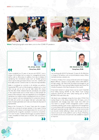 food safety are also covered under my roles and responsibilities. Based offshore, I witness a strong safety culture within ADOC,